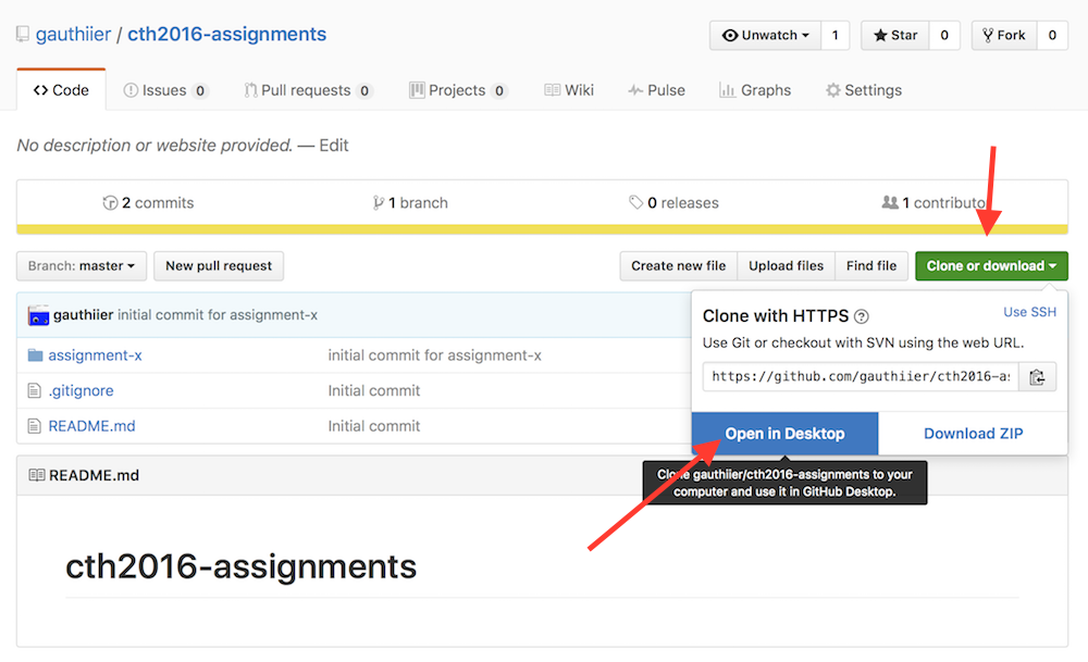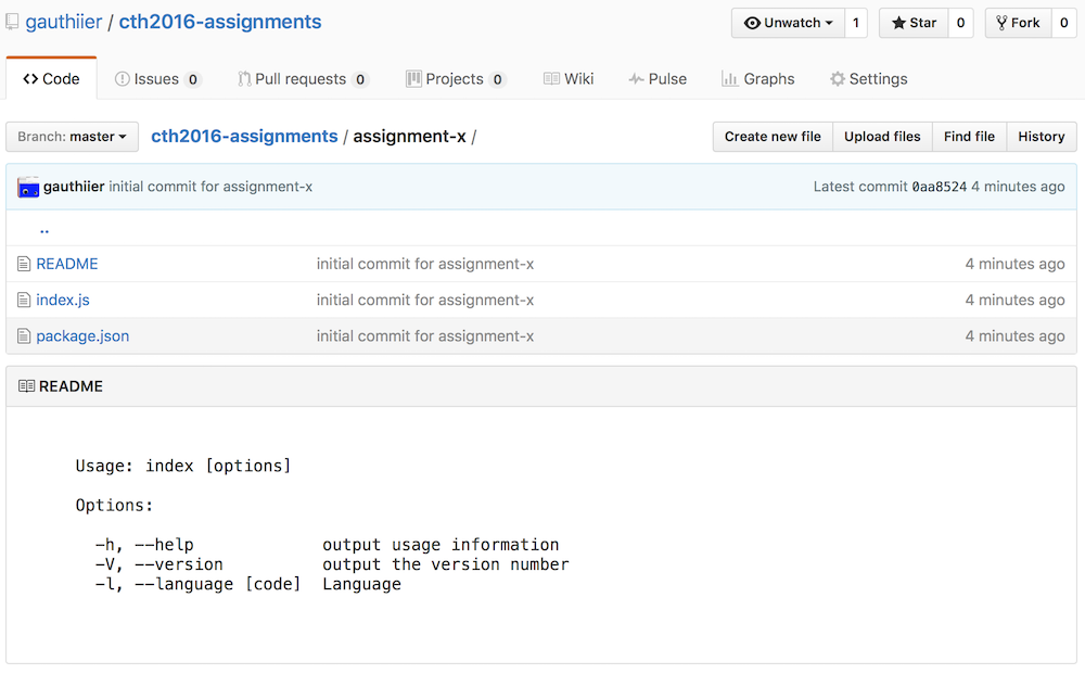 You should now see these changes online in your new cth2016-assignments/assignment-x/ directory: