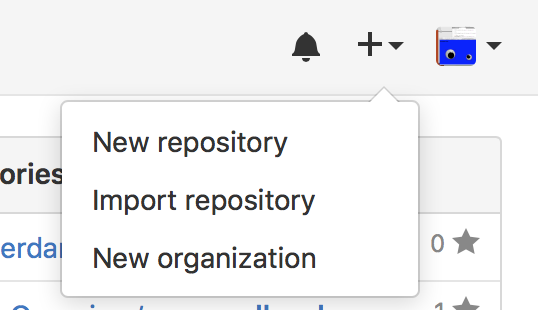 First create a repository under your github account. To do so, login to Github and on the top/right corner of the page select the '+' symbol and 'New repository'